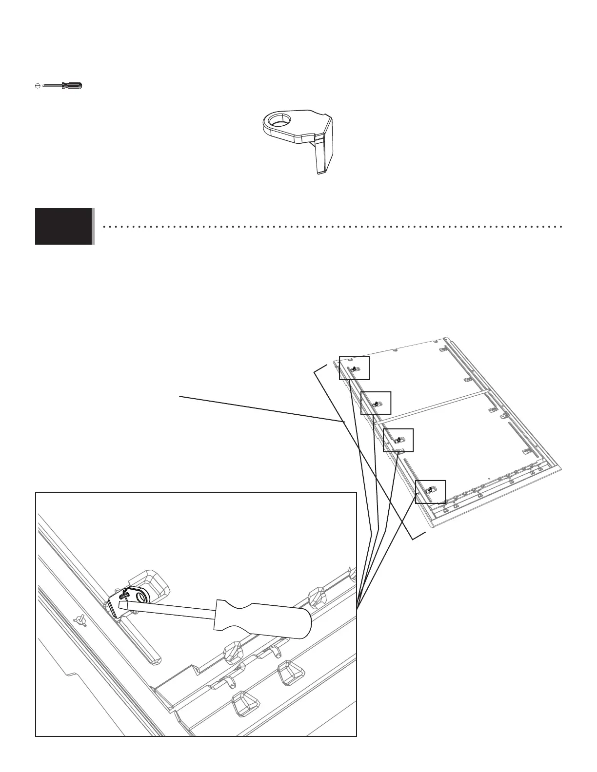 into the four slots along the edge of the Roof Panel. Orient all four Clips face the same way. Press down with a screw-