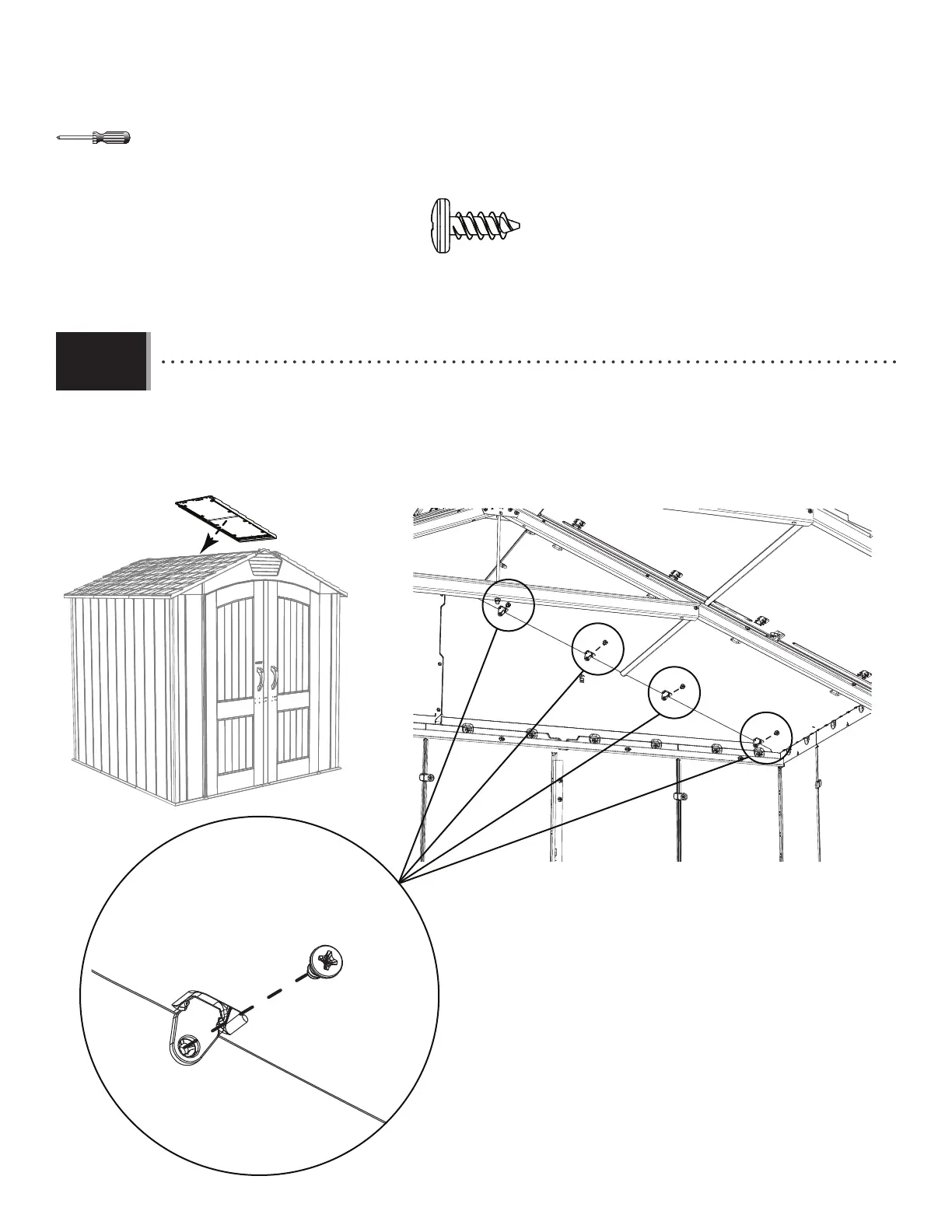 • Set the Roof Panel from step 10.20 onto the Gable, Wall Panel, and Truss Assembly. Secure to the Gable with four