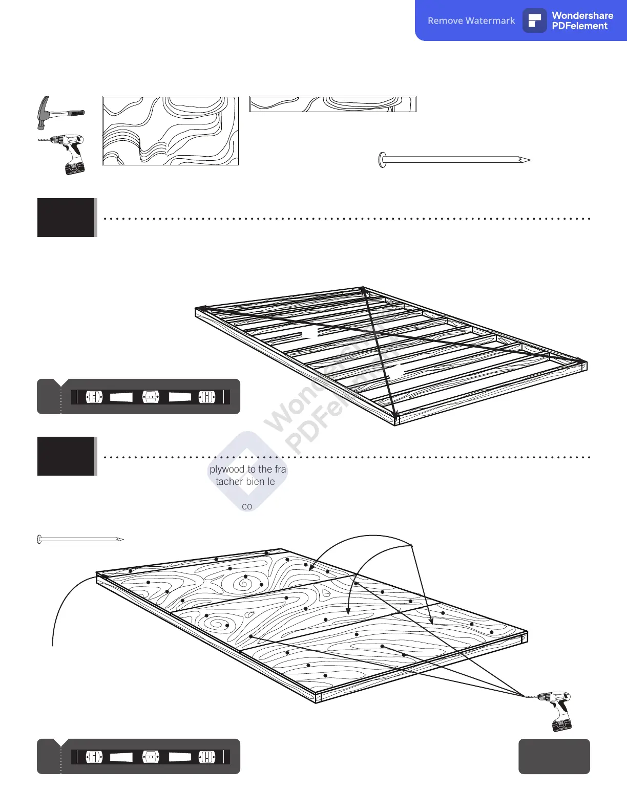 • Usando unos clavos, sujete el contrachapado al armazón. Entonces, taladrar agujeros de 8 mm para el