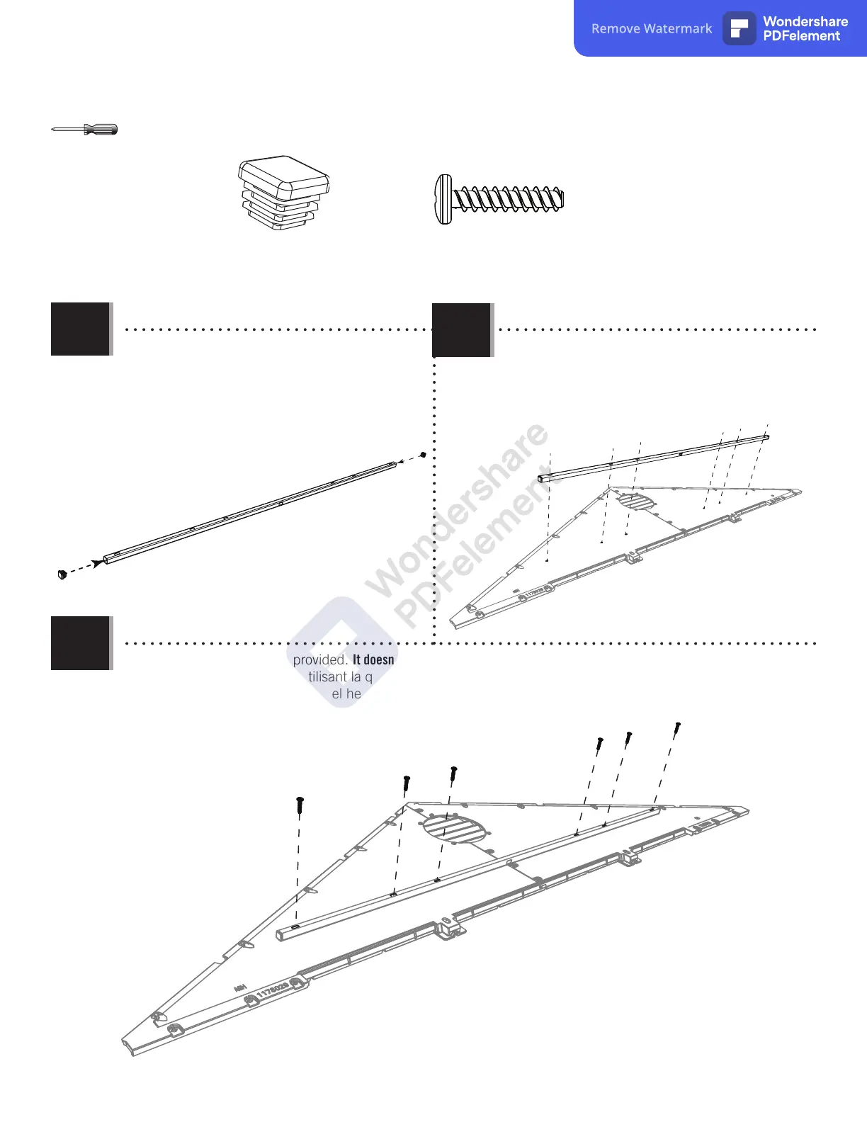 • Fixer les uns aux autres en utilisant la quincaillerie incluse. Peu importe quel côté va contre le pignon.