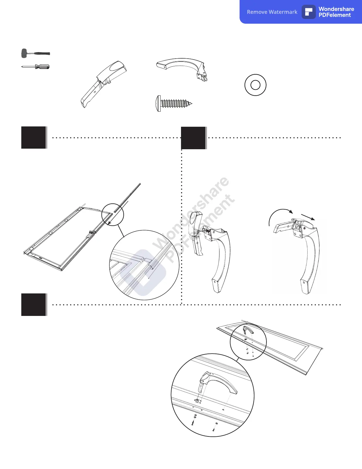 • Attacher la poignée à l’aide de la quincaillerie incluse.