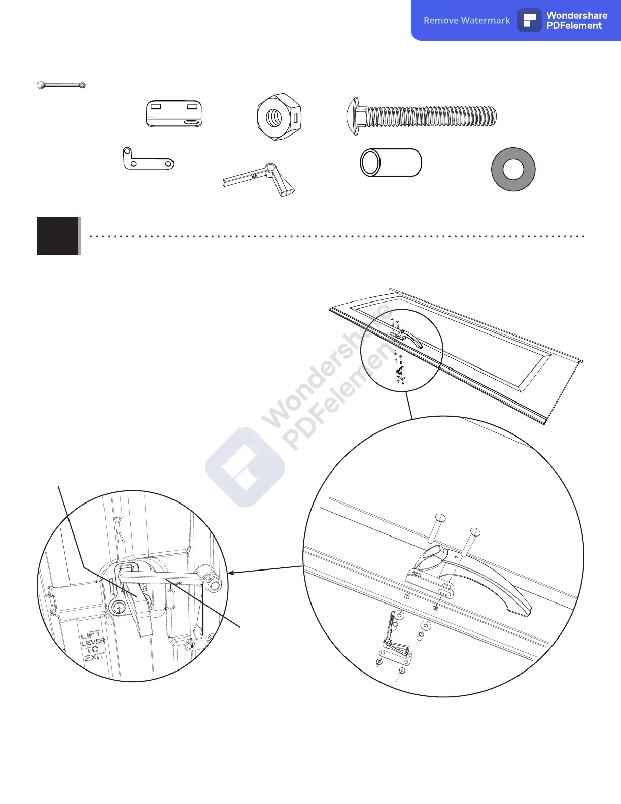 • Attacher les accessoires de verrouillage à l’aide de la quincaillerie incluse. Le bras du Loquet doit rester sur le levier