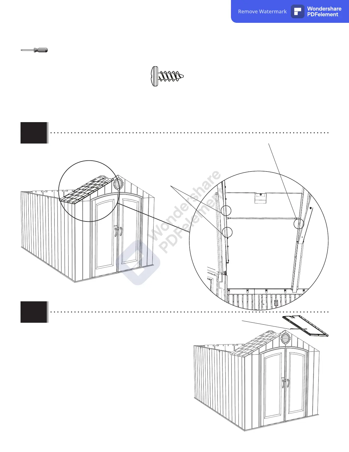 • Insert three (3) more Screws (ADZ) to secure the Panel and Support in place.