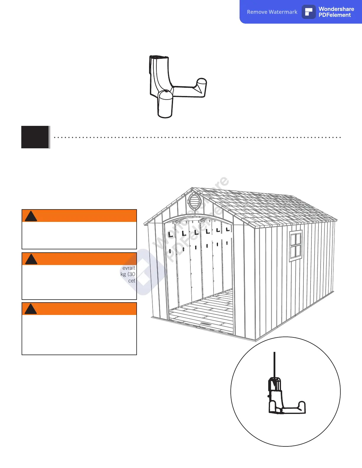 • Insérer les six (6) crochets muraux (EDL) dans les fentes des panneaux muraux (peu importe le côté de la remise).