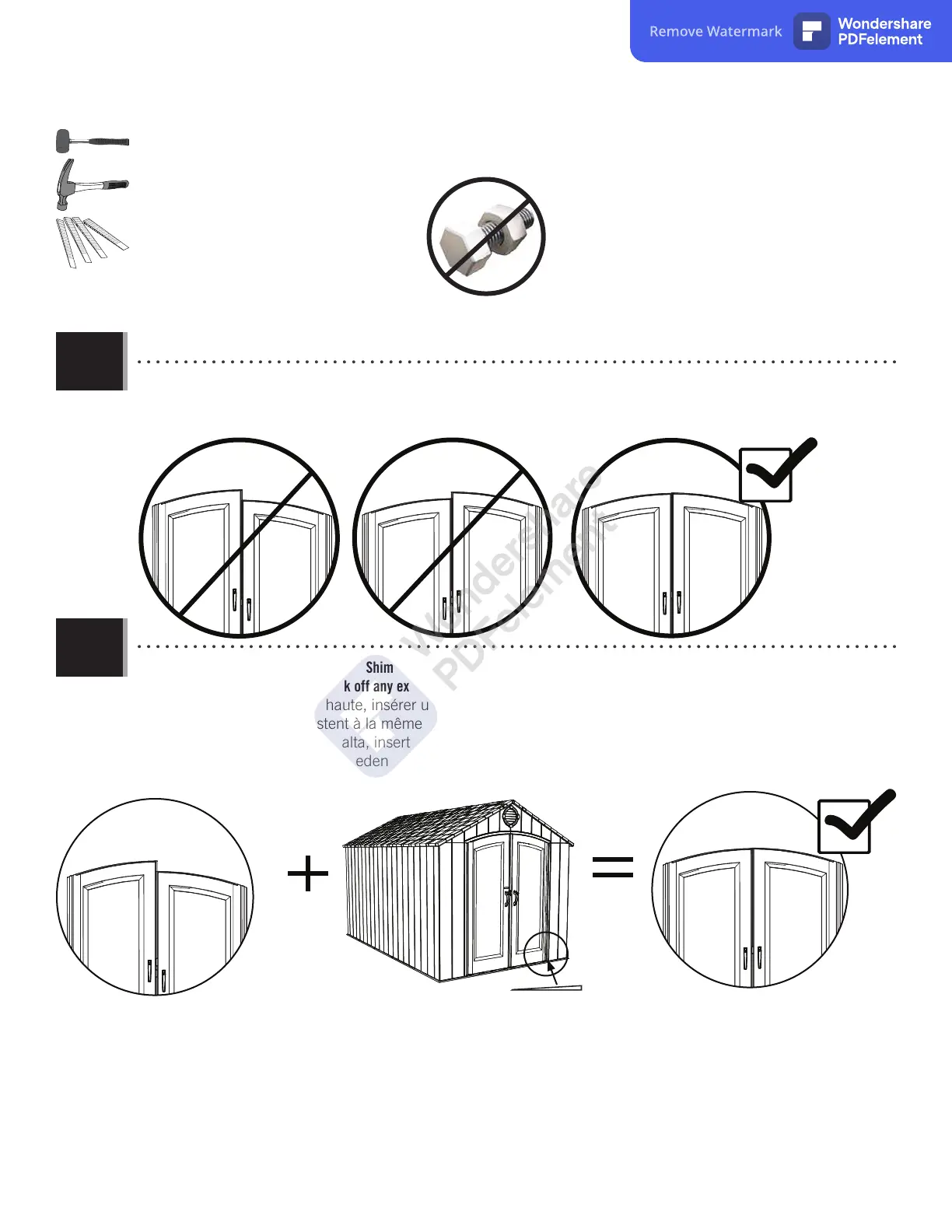 • Si les portes ne sont pas de niveau l’une avec l’autre, suivre les étapes dans cette page ou la suivante pour les niveler.