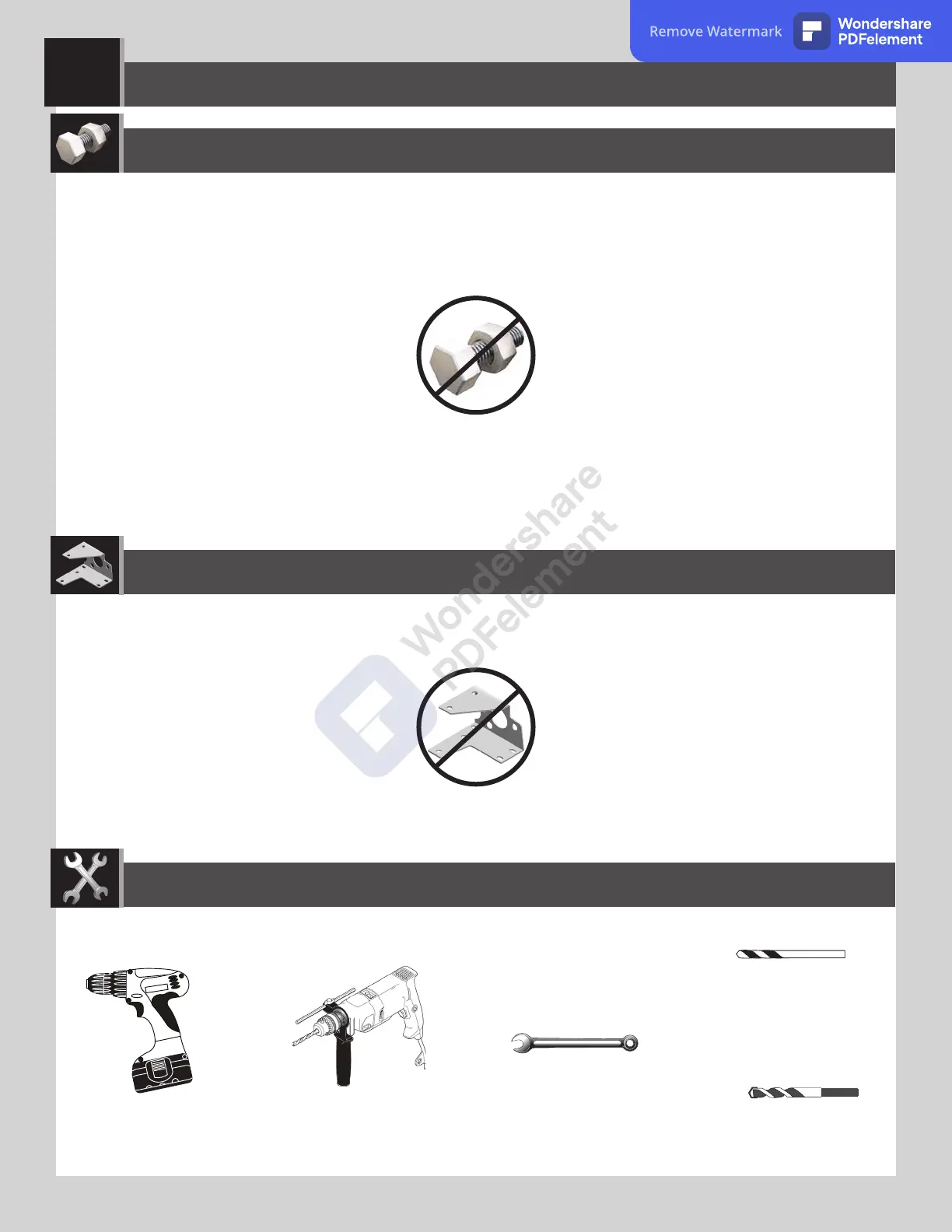 HARDWARE REQUIRED / QUINCAILLERIE REQUISE / HERRAJE REQUERIDO