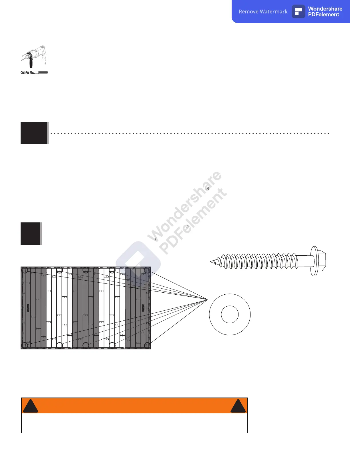 a hammer drill, 5/16" (8 mm) masonry bit, ten (10) 3/8" x 2" (10 mm x 5 cm) Concrete Screws and ten (10) 3/8" x 1"