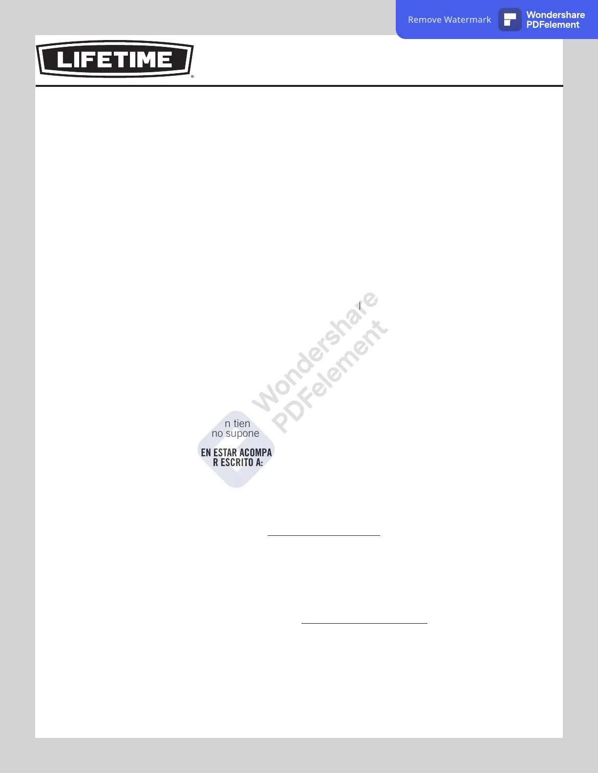 esta política. Este producto no está destinado para uso institucional o comercial; Lifetime Products, Inc. no asume