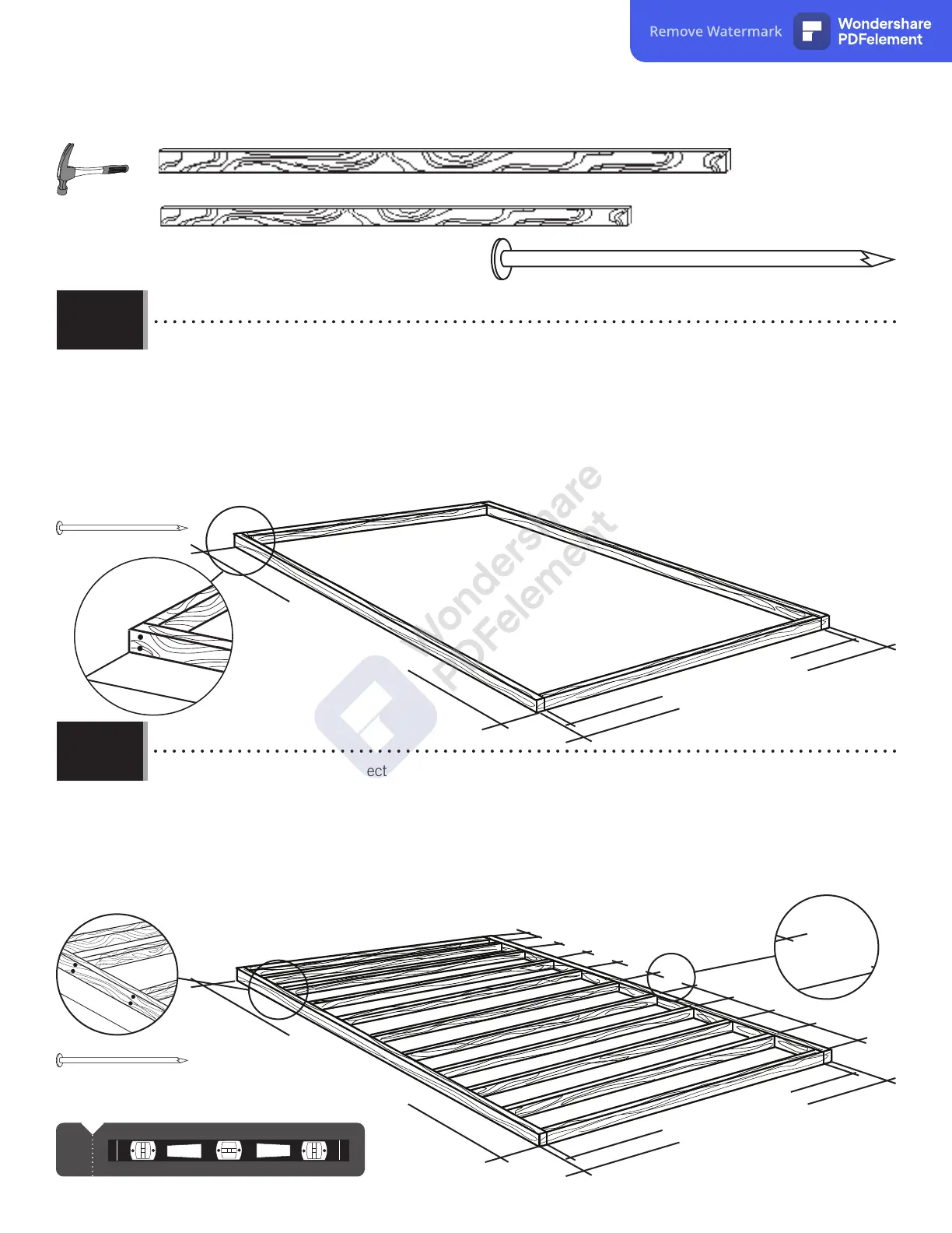• Ensure all lumber is treated and approved for outdoor use. Build frame to 93 1/2" x 148" (2,38 m x 3,76 m)