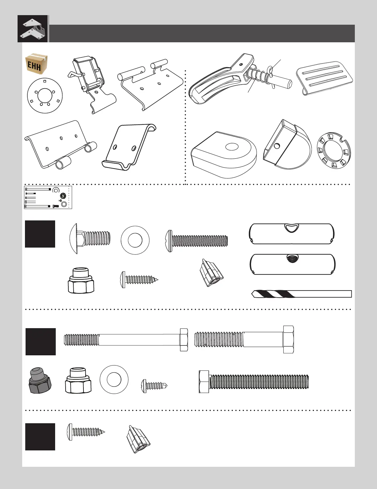 Hardware Required for Section 1 / Les accessoires requis pour la section 1 / Los elementos de fijación requeridos para la sección 1