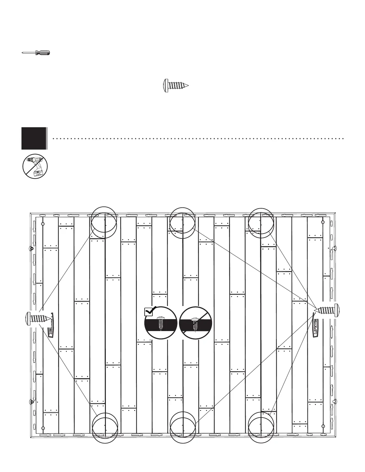 • Insert the Screws (BQC) through the divots in the Floor Panels and into the tabs of the adjacent Floor Panels. (The