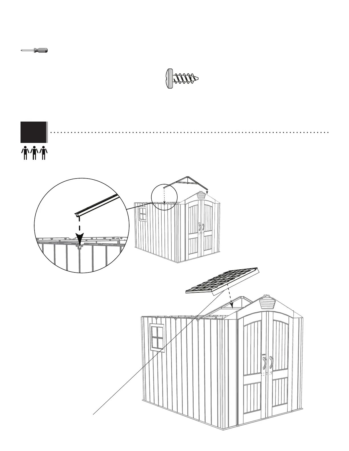 • Set a Truss Assembly into the notches on the fi rst two opposite Wall Panels. Set the Roof Panel from steps 10.2–10.3 onto