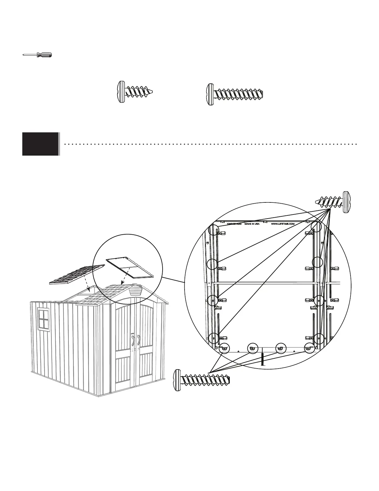 • Repeat the last step for the opposite Roof Panel. Only insert the long Screws (ADV) along the top edge of the