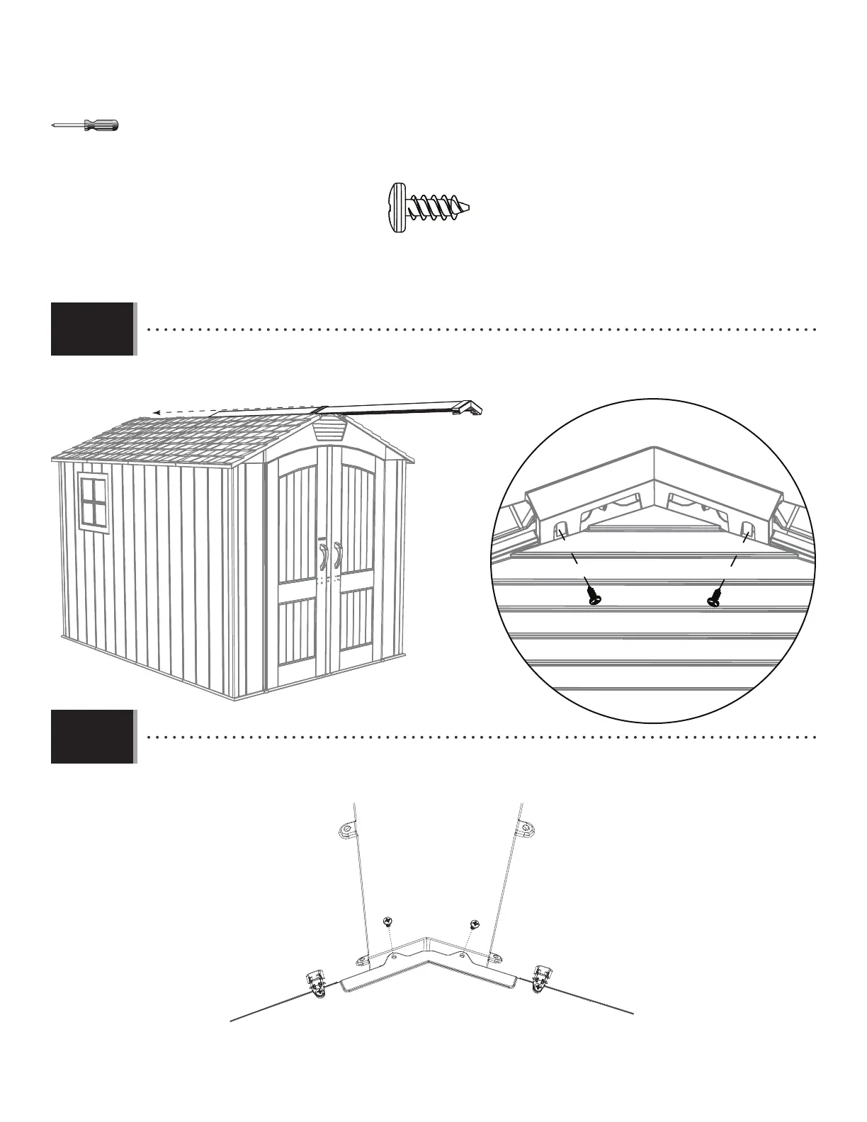 • Connect the End Cap to the end of the Skylight, and use two (2) Screws (ADZ) to secure it to the outside of the shed.