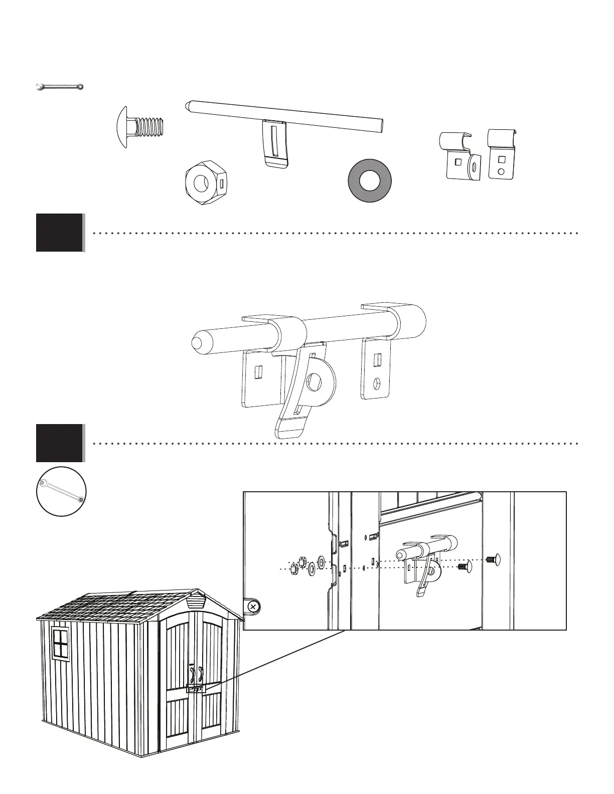• Attacher l’ensemble du loquet à la porte droite à l’aide de la quincaillerie incluse. Bien serrer ces écrous.