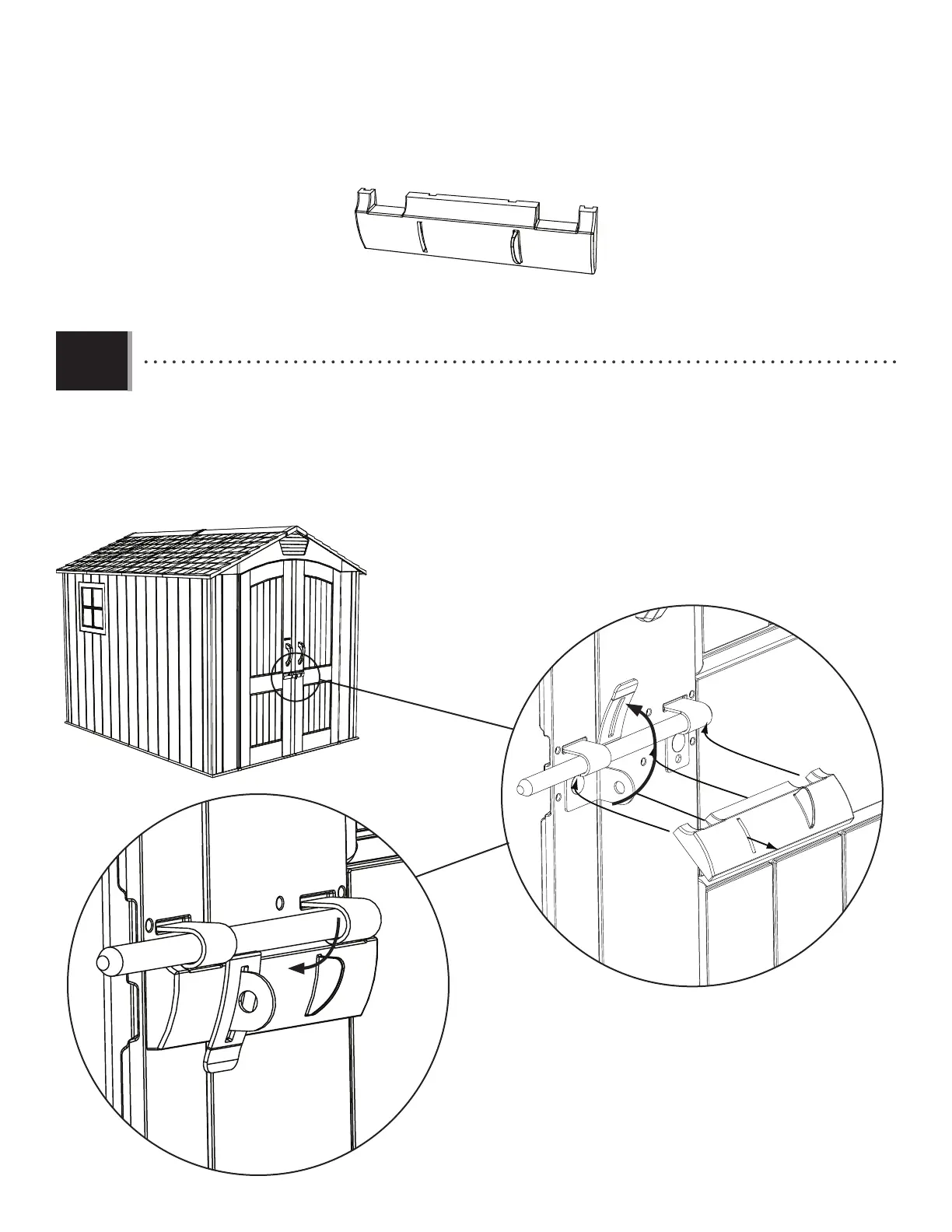 • Deslizar la placa cubrepestillo grande derecha (CVQ) debajo el conjunto del pestillo, y girar el pestillo en la posición de