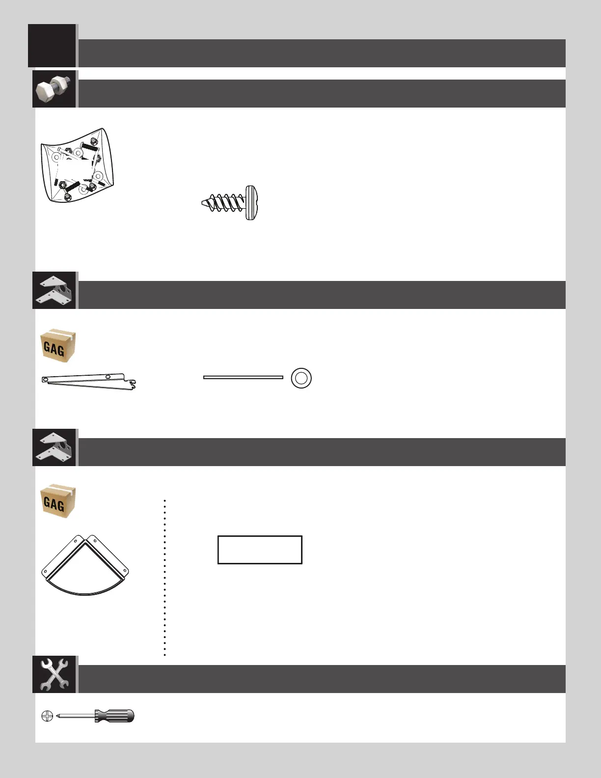 HARDWARE REQUIRED / QUINCAILLERIE REQUISE / HERRAJE REQUERIDO