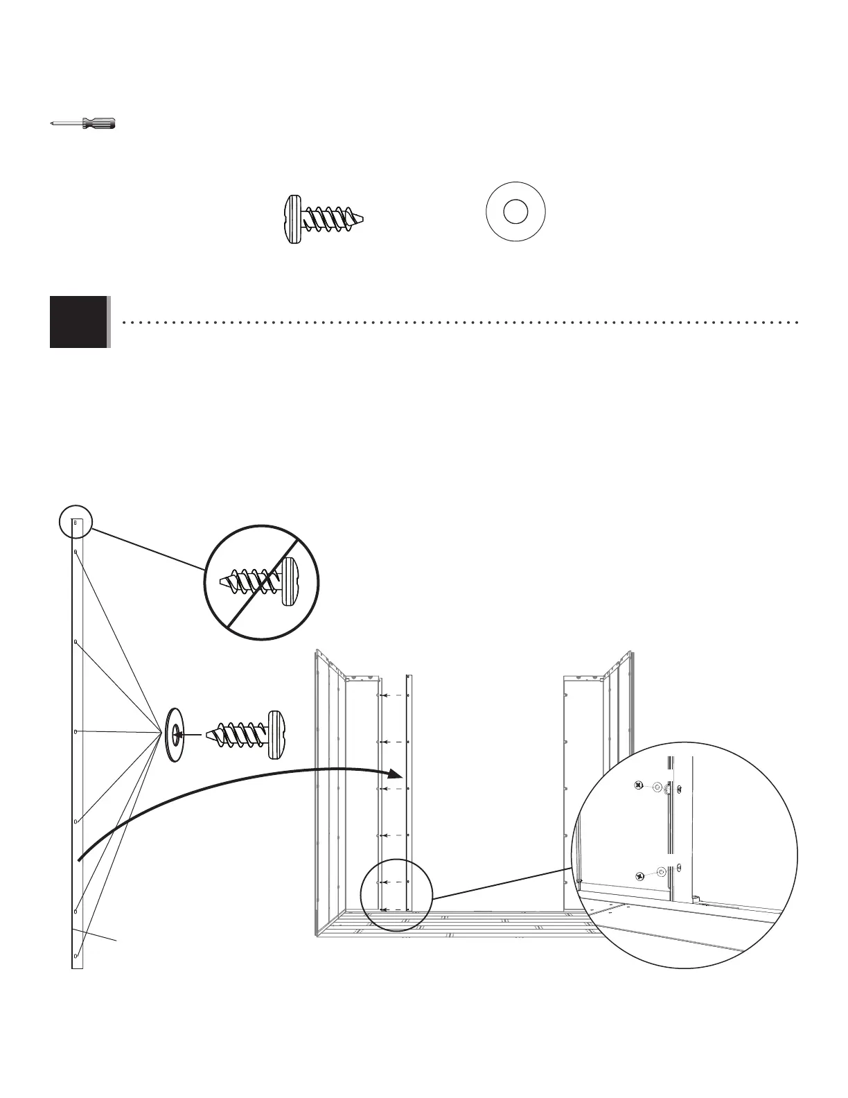 Secure the Jamb to the Panel using six (6) Screws (ADZ). The top hole does not require a Screw—yet.