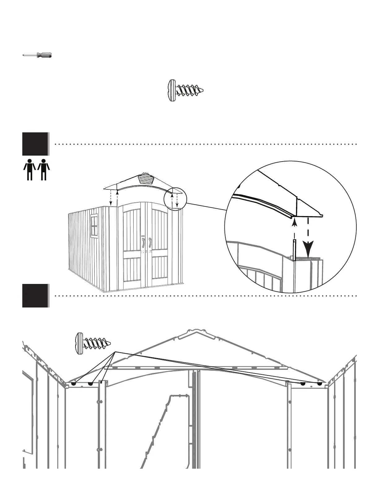 • Secure the Entry Gable to the Shed using fi ve (5) Screws (ADZ).