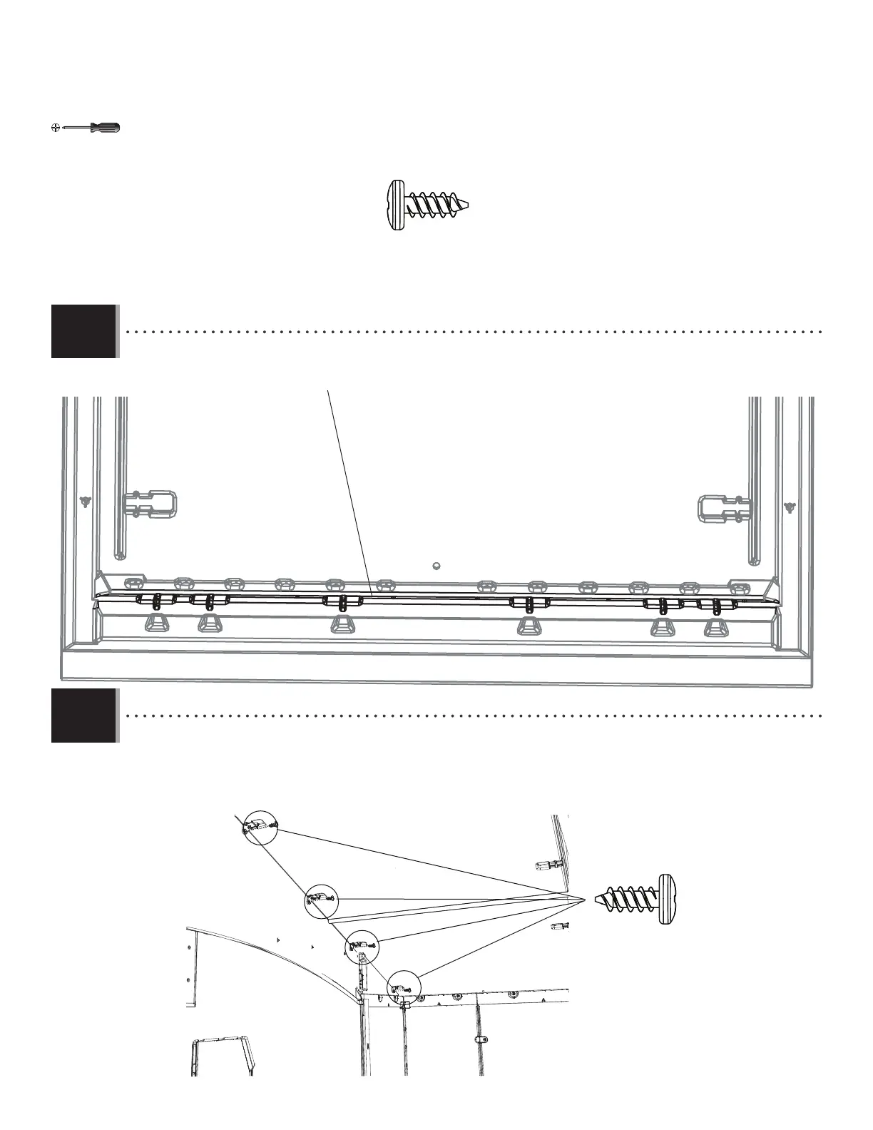 • Align the Clips with the holes on the inside of the Entry Gable, and insert four (4) Screws (ADZ) to secure the Gable to the Roof Panel.