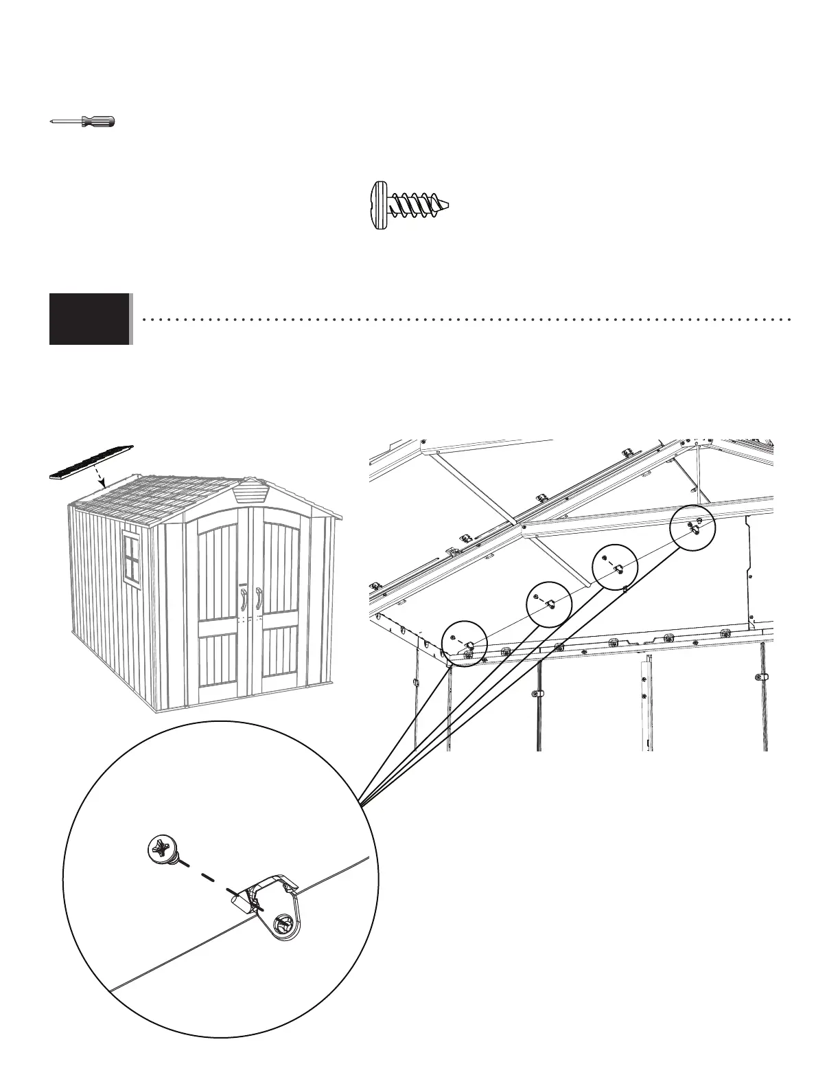 • Mettre le panneau de toit de l’étape 10.18 sur le pignon, panneau mural, et la ferme. Fixer-le au pignon avec
