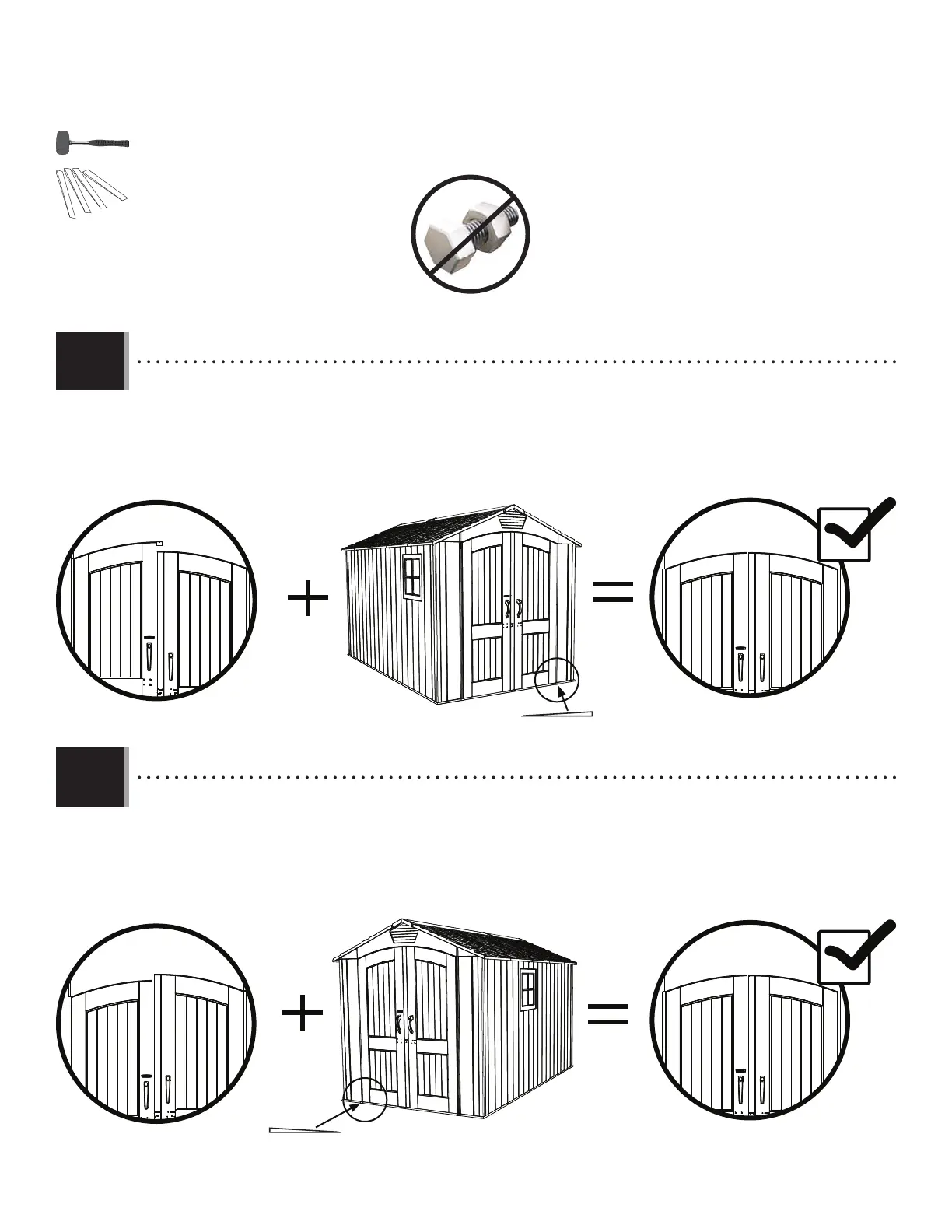 • Si la puerta derecha es más alta, insertar una cuña debajo el piso y la bisagra izquierda hasta que las dos