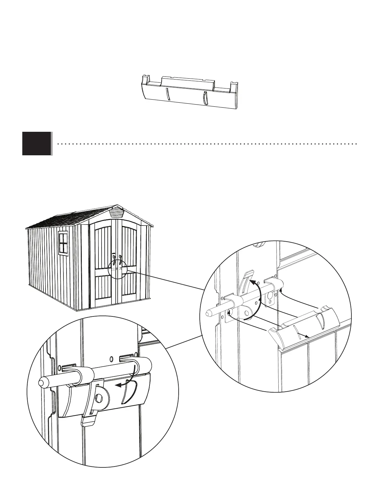 • Deslizar la placa cubrepestillo grande derecha (CVQ) debajo el conjunto del pestillo, y girar el pestillo en la posición de