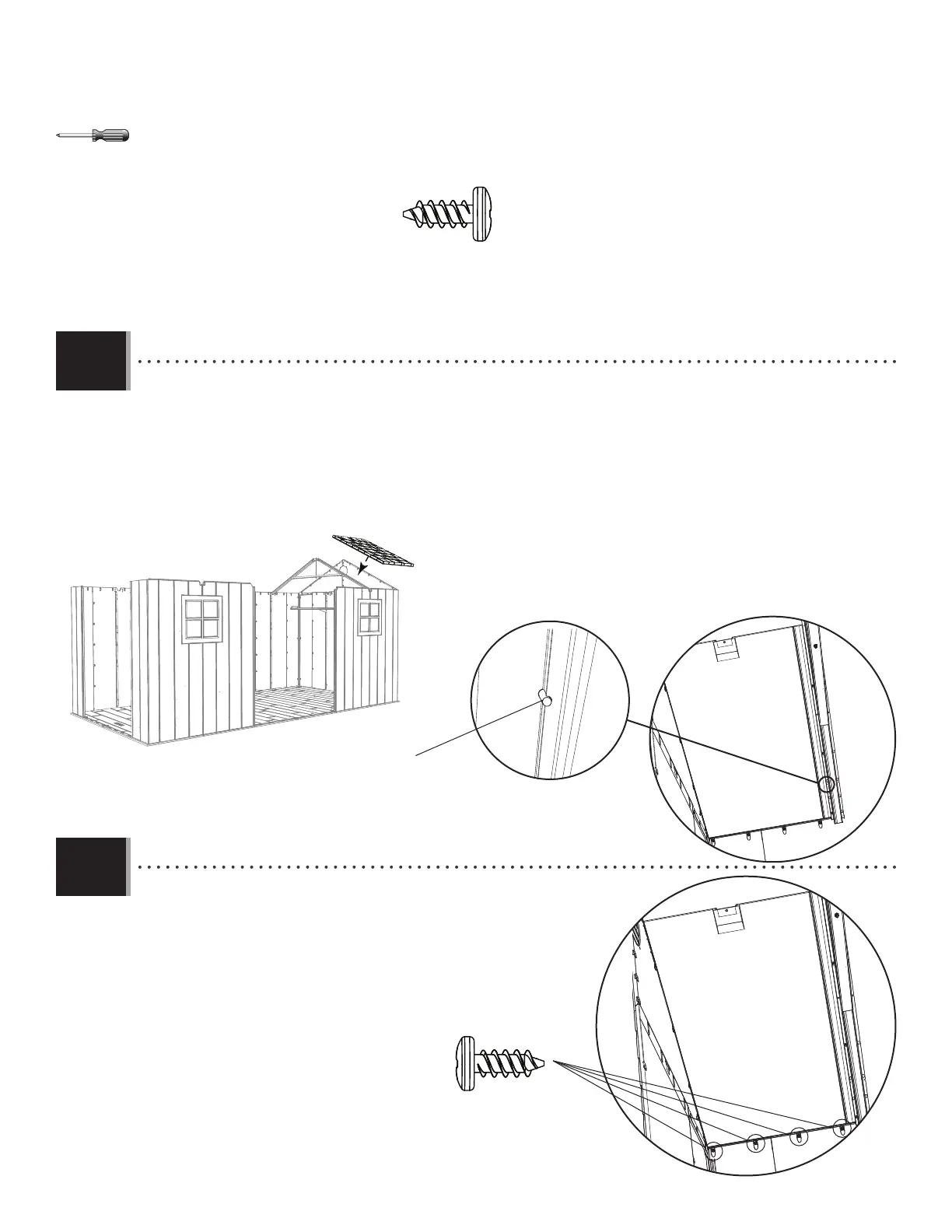 borde inferior del panel de tejado, e insertar cuatro (4) tornil-