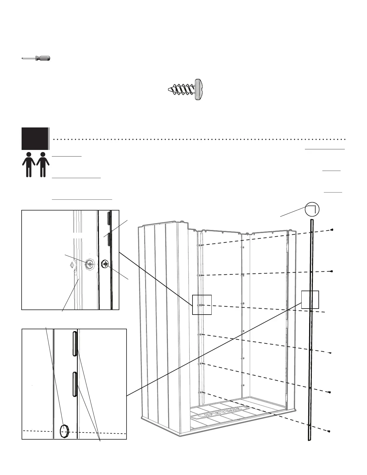 of the seam between the two Rear Wall Panels. Secure the Channel to the Wall using six (6) Screws (ADZ). The slits