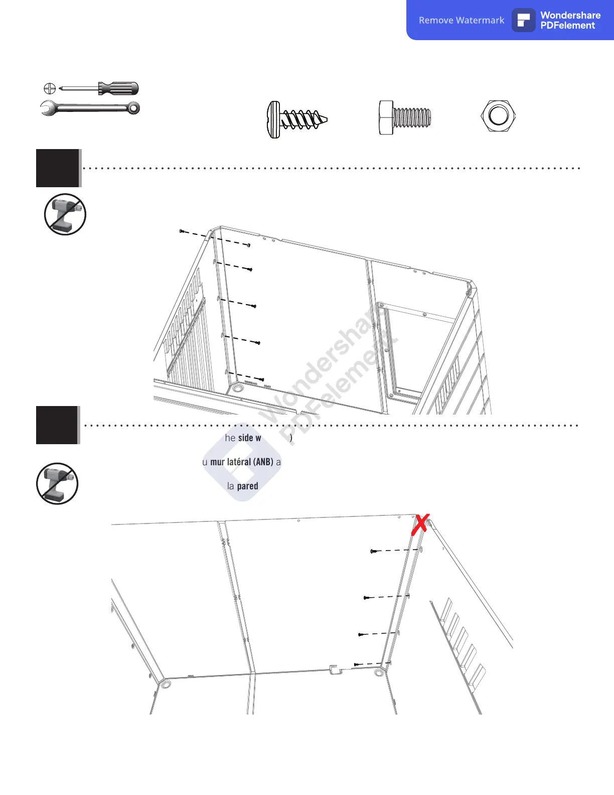 • Fixer le mur arrière (ANA) au mur latéral (ANB) avec des quincailleries indiqué. Ne pas relier le point de fi xation