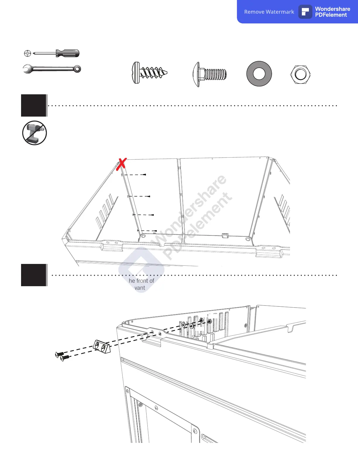 • Attach the back wall (ANA) with the side wall (FKC) with the hardware indicated. Do not attach the top attachment