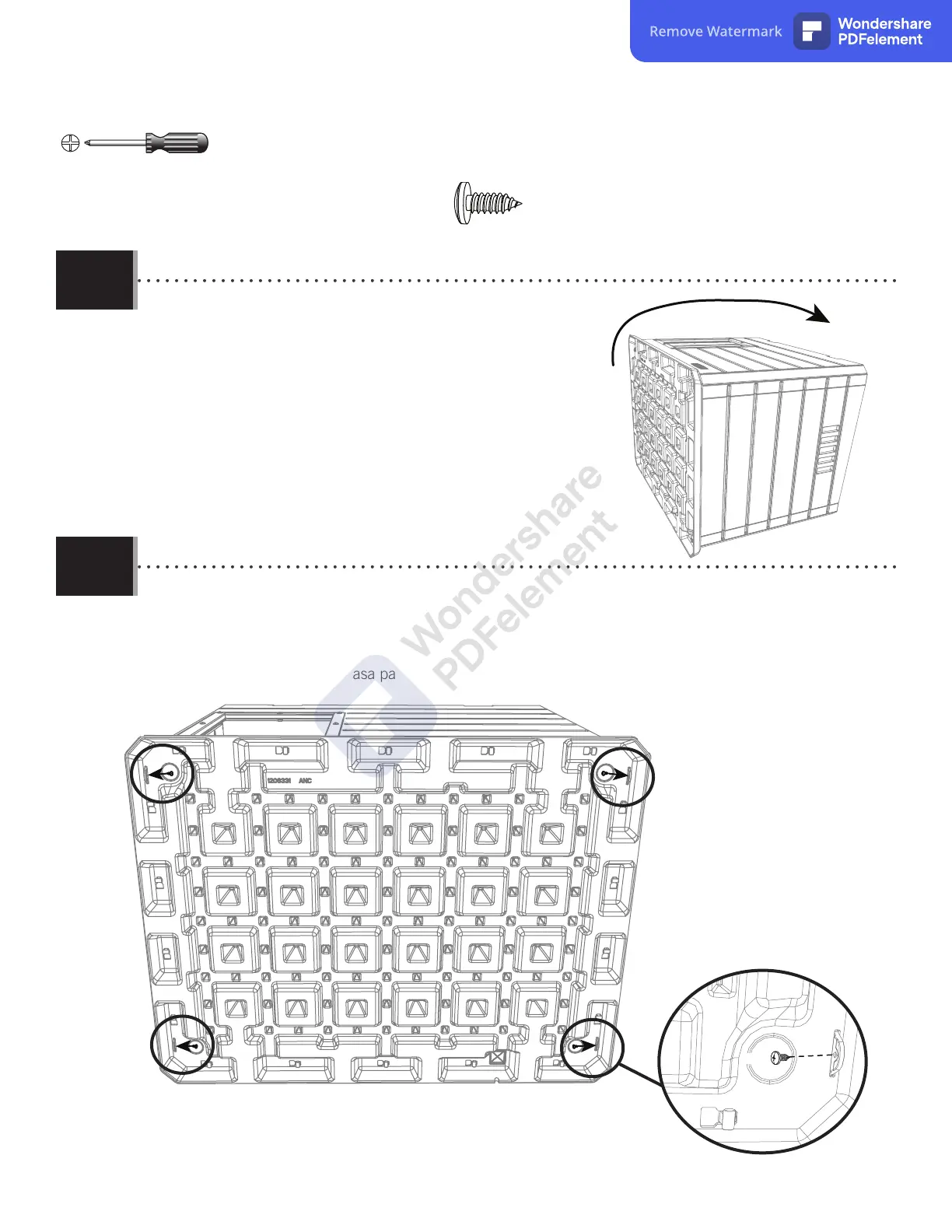 • Attach a screw into each wall tab in each corner of the dog house under the fl oor of the house. Once done, turn