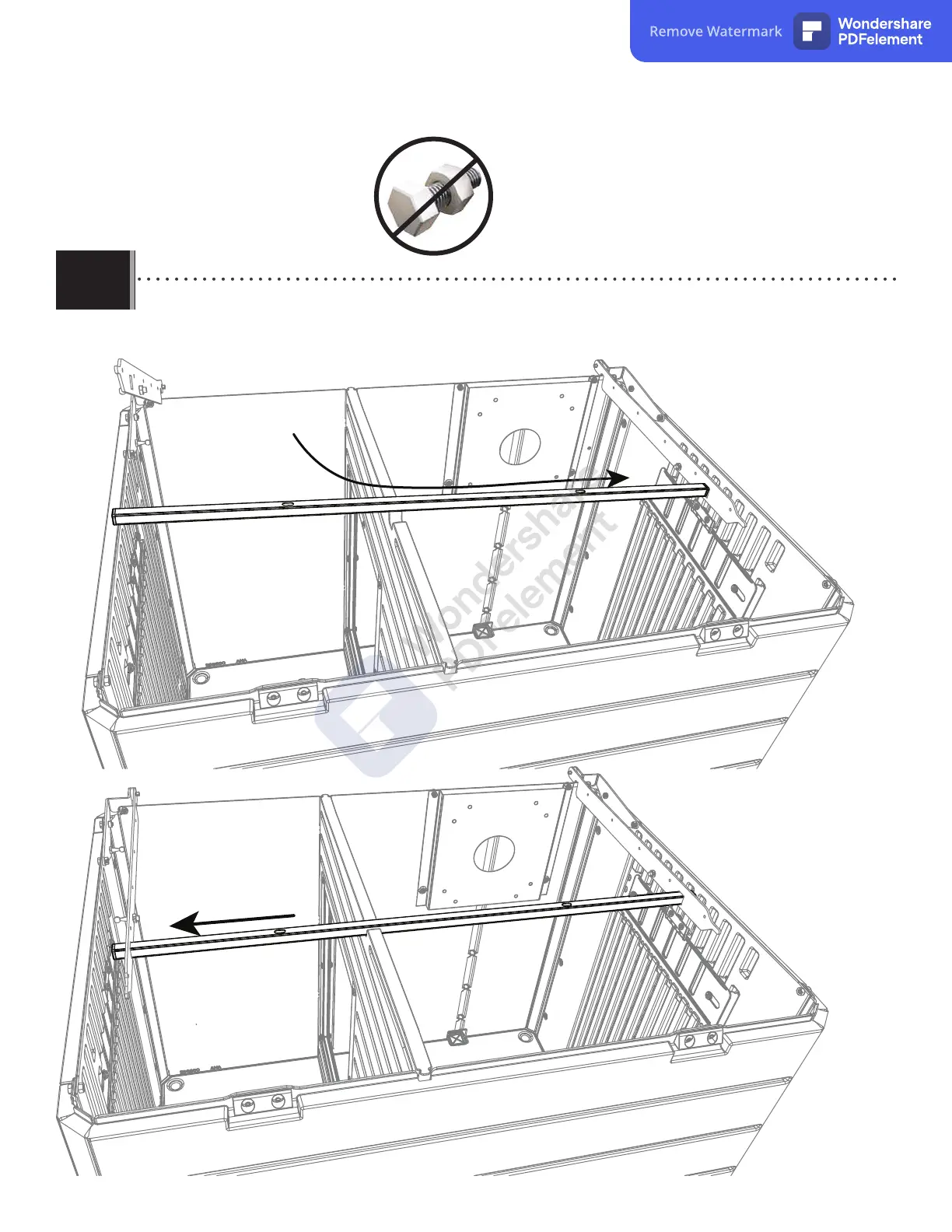 • Placer la barre de soutien du toit (GUO) sur les charnières droite et gauche. Les trous ovales et plates font face vers