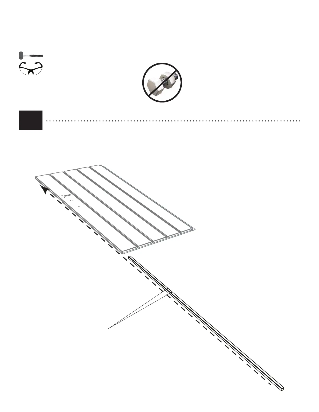 que cuelga unos 15 cm (6 in). Orientar los dos agujeros en el tubo cuadrado boca arriba. Si es necesario, usar un mazo de goma para ayudar a