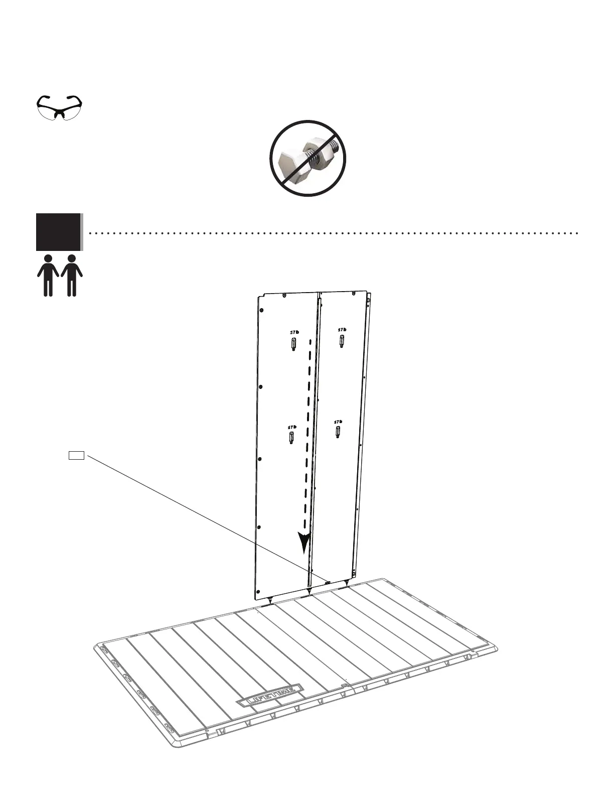• Insert the three tabs at the bottom of a rear wall panel (AHD) into the 2nd, 3rd and 4th slots from the rear, right edge of the fl oor.