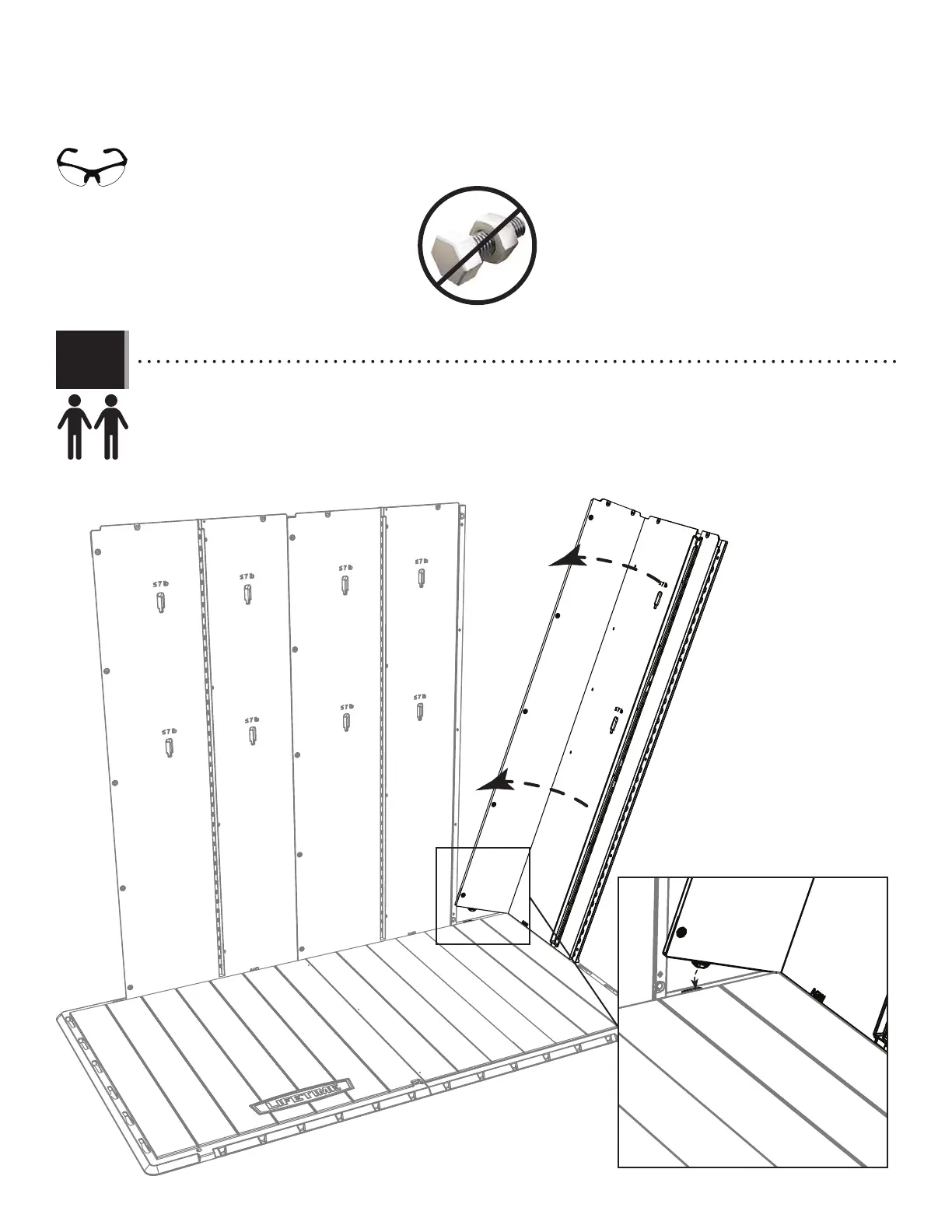 • Fold the panel as you tilt it to the right until it’s in front of the right rear wall panel and the tab is over the slot in the fl oor.