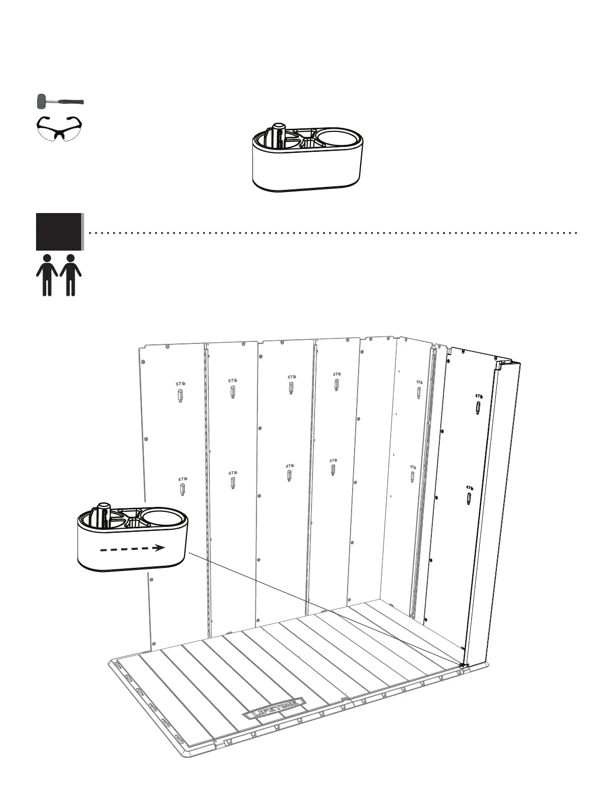 the wall tube down through hinge cap and into the hole in the fl oor as far as it will go. If ncessary, tap it with a rubber mallet.