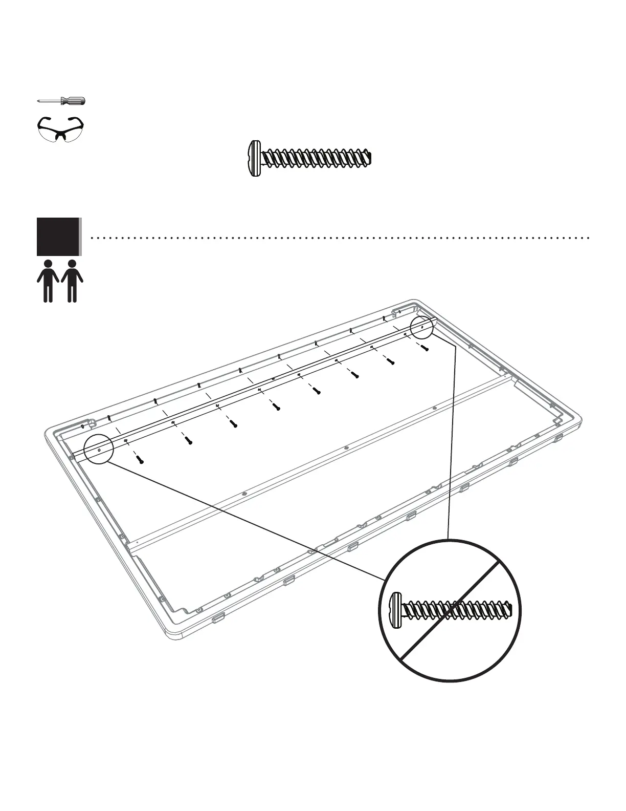 • Secure the header (GKR) to the roof panel using eight (8) screws (GLW). Do not overtighten.