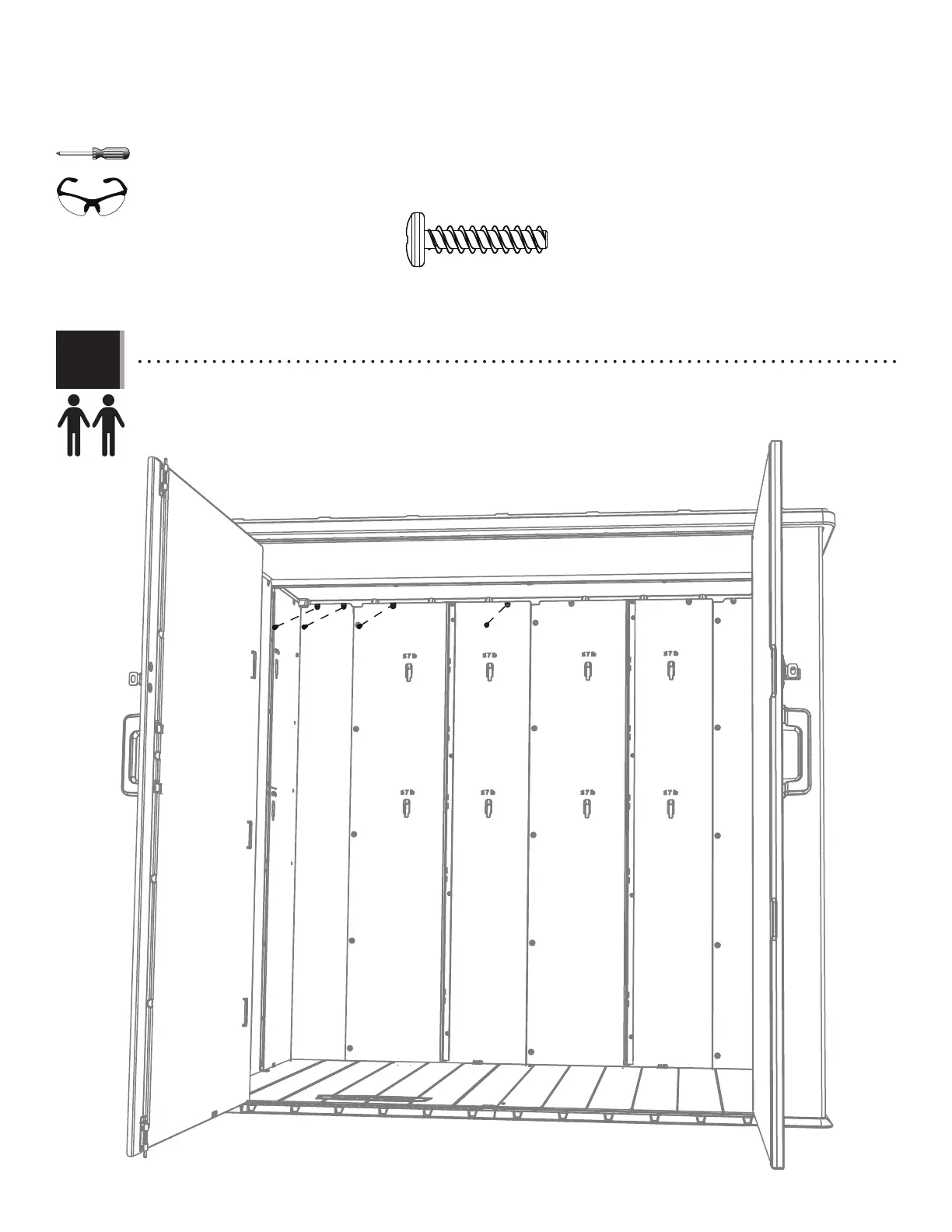 • Secure the roof panel to the left side of the back wall using four (4) screws (ADV). Do not overtighten.