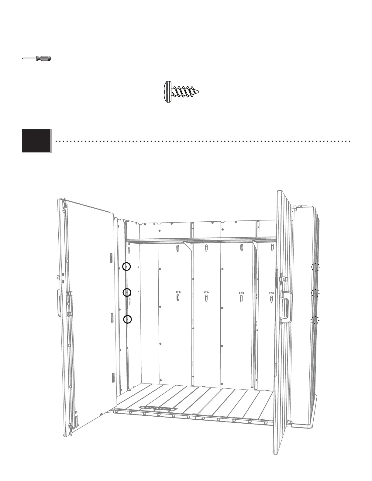 • Insert three (3) screws (ADZ) into the side wall/shelf support channel at the locations shown. Repeat this step for the