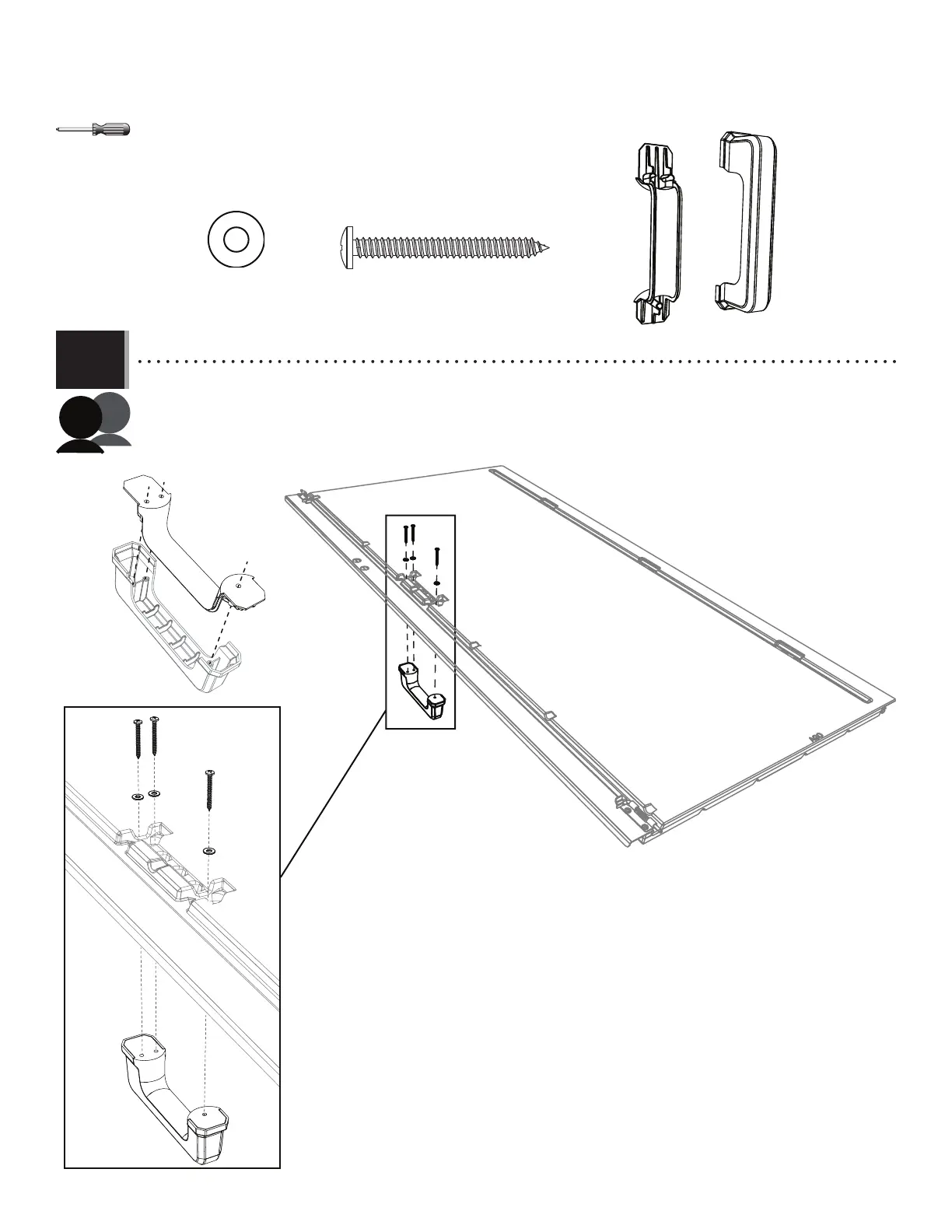 • Attach the front and rear handle pieces (GJS and GJR) together. Secure the handle to the door using the hardware indicated.