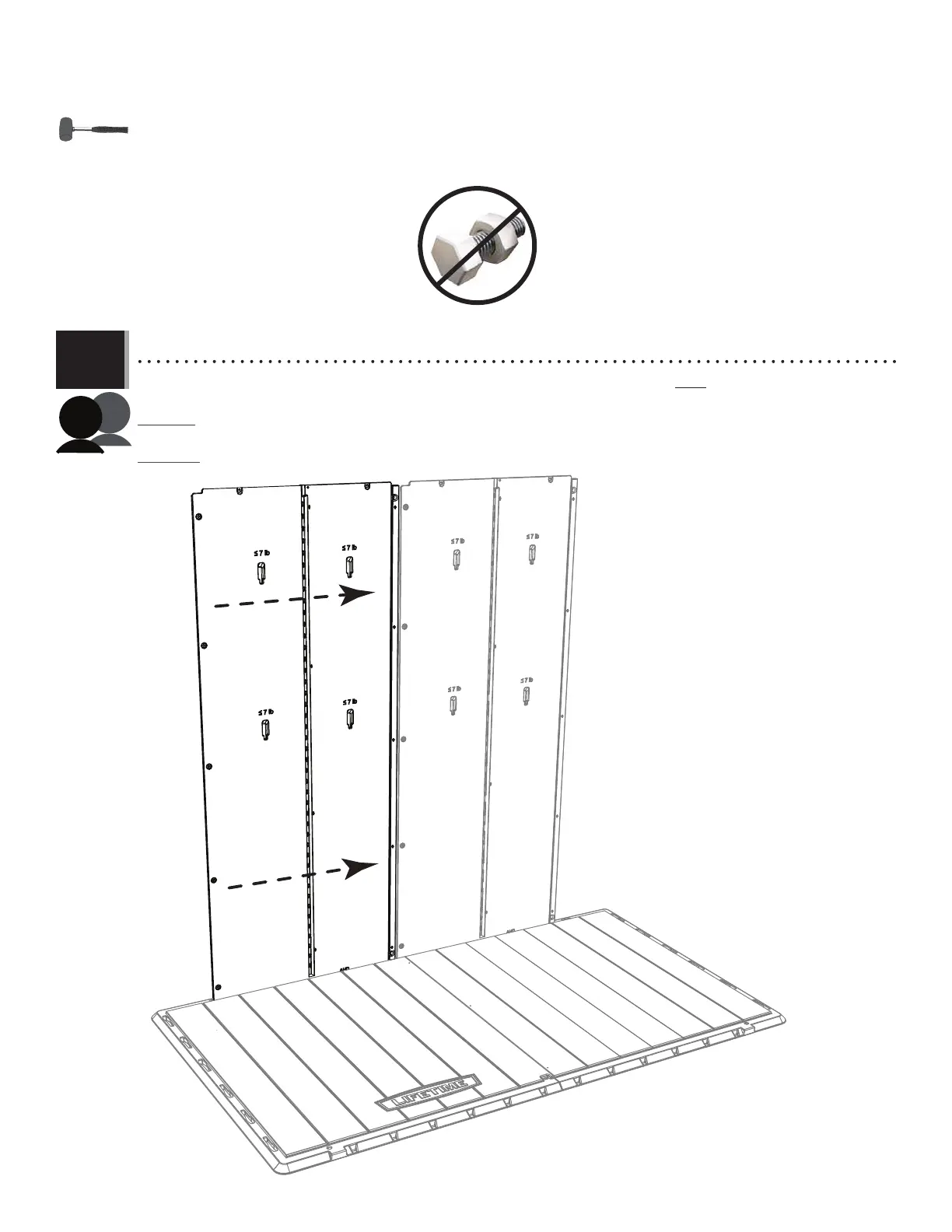 • Slide the panel to the right until it abuts on the fi rst panel and the holes align. If necessary, gently tap the panel with a rubber mallet.