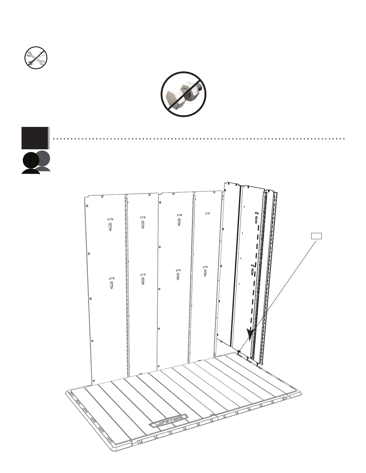 • Insert the front three tabs at the bottom of the right, rear corner wall panel (AGW) into the rear three slots on the right edge of the