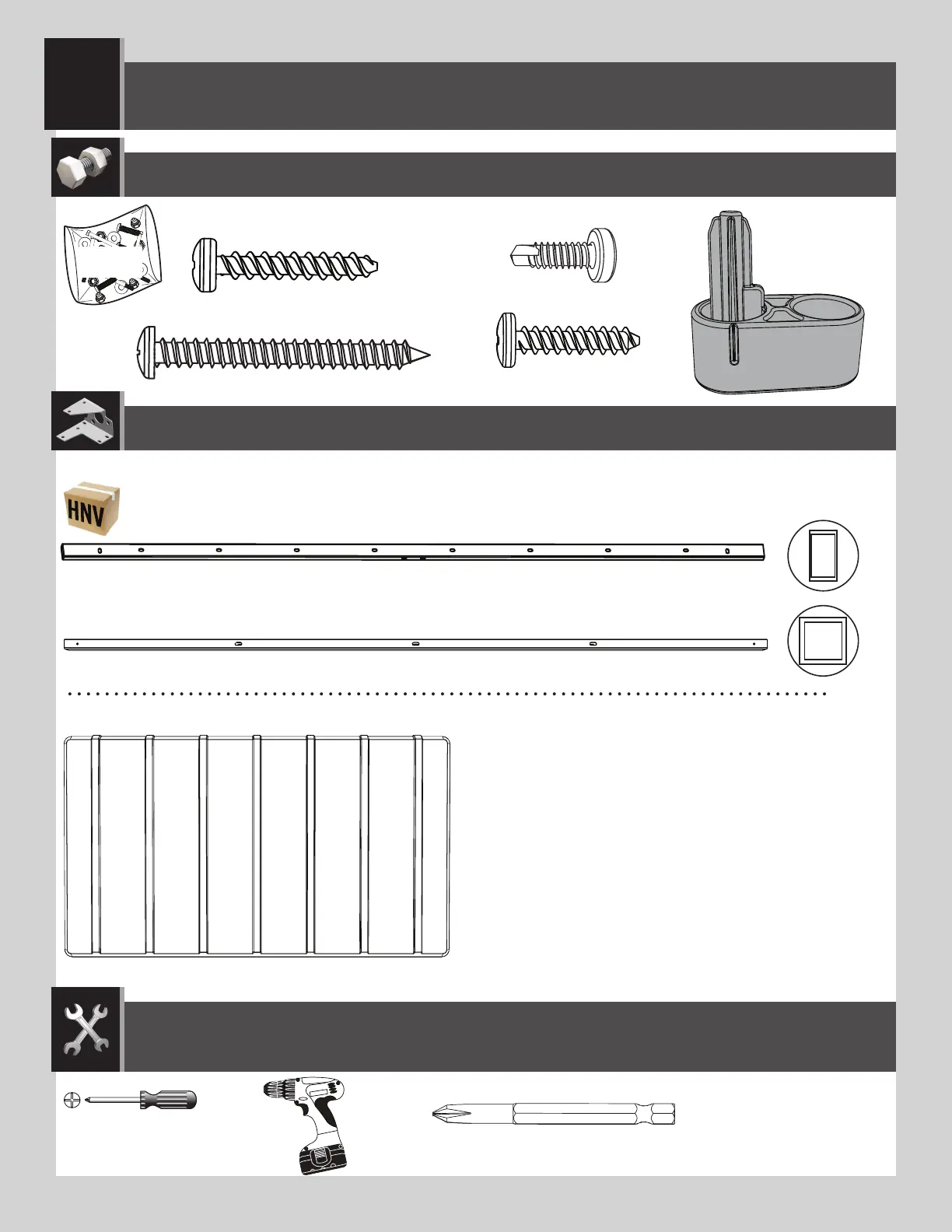 HARDWARE REQUIRED / QUINCAILLERIE REQUISE / HERRAJE REQUERIDO