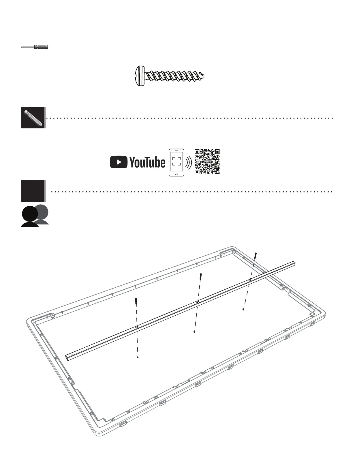 the tube over the holes in the panel. Secure with three screws (GLW). Tighten screws only until fl ush with the beam.