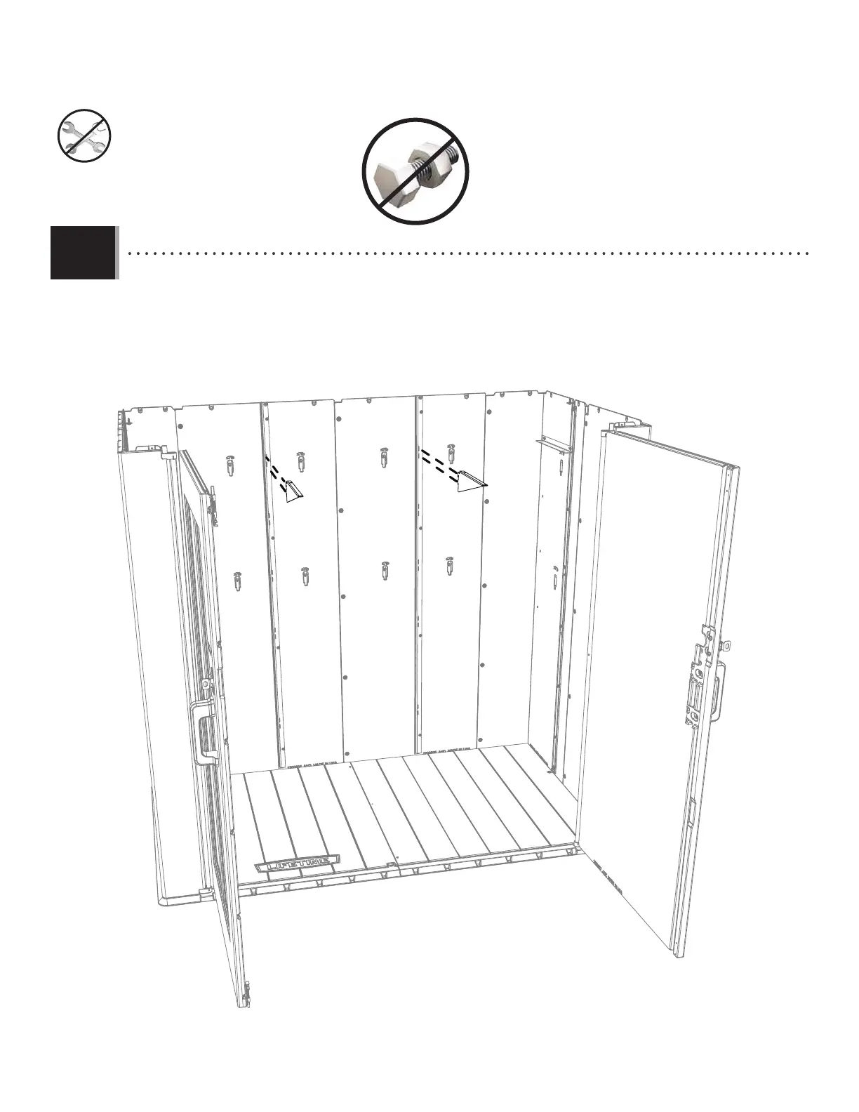 • Attach the triangular shelf brackets (AIZ) to the wall support channels. The brackets must be at the same height.