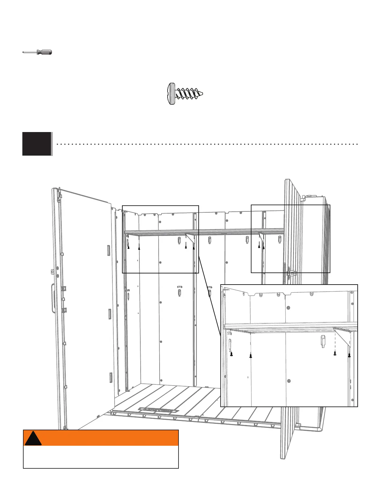 • Secure the shelf to the brackets using eight (8) screws (ADZ). Do not overtighten; tighten only only until flush with the brackets.