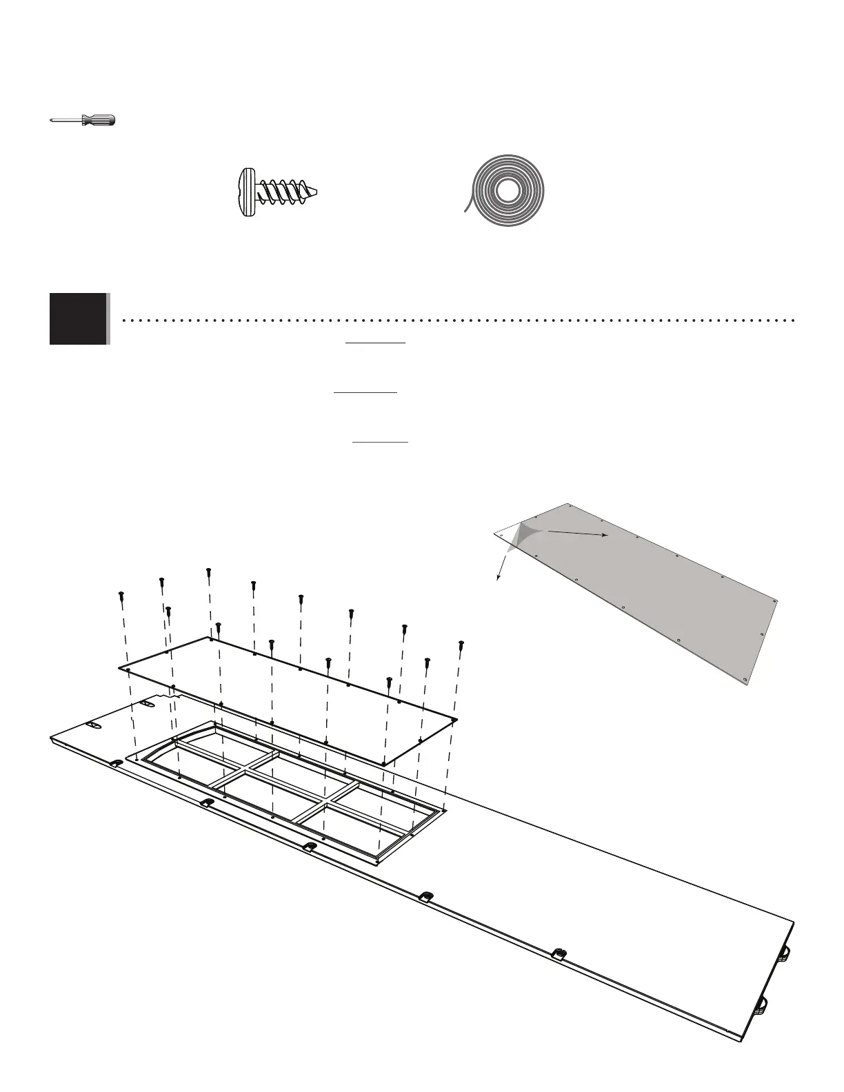 porte, et, avec douceur, mettre le carreau sur la porte. Fixer le carreau à la porte en utilisant quatorze (14) vis (ADZ).
