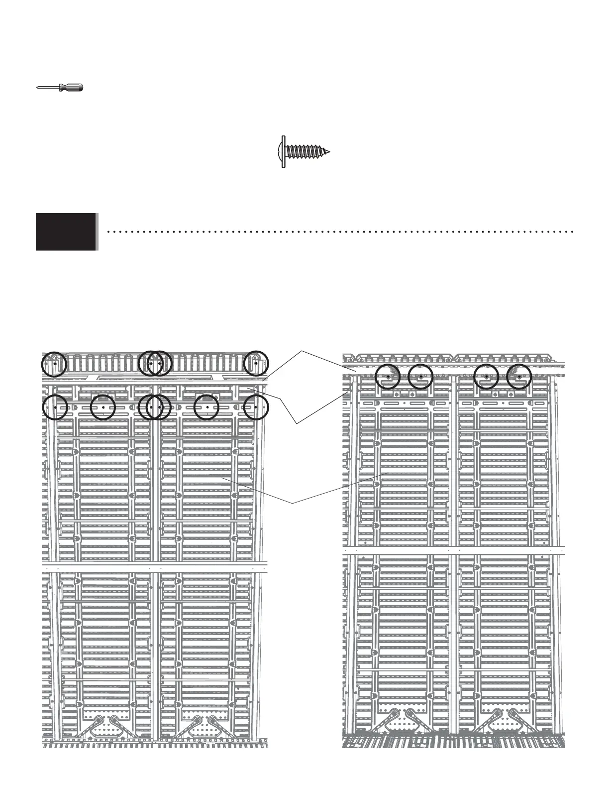 • Secure the upper roof panels to the transom, trusses and lower roof panels using fourteen (14) screws (GJZ) only at