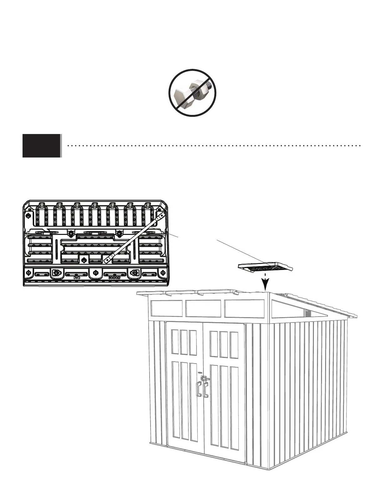 • Colocar el panel de techo superior de los pasos 10.10–10.11 sobre el lado superior derecho del techo como se